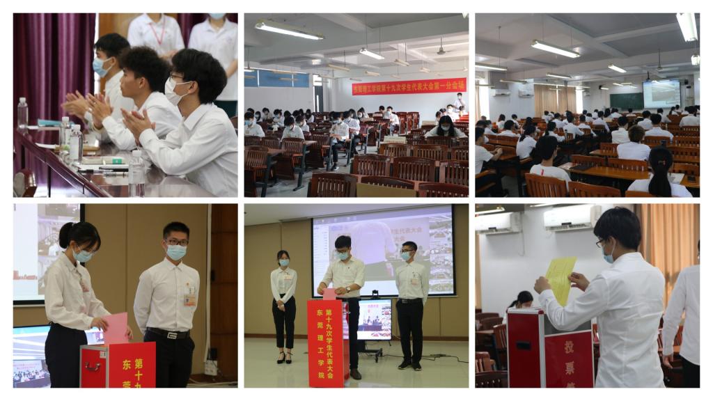 根据疫情防控要求,第十九次学代会、第二次研代会首次采用“主会场+分会场”线上开展的模式,在松山湖校区分别设置了主会场和6个学代会分会场、2个研代会分会场,在莞城校区设置了2个学代会分会场。同时,要求全体学生代表、研究生代表做好佩戴口罩、测量体温等各项防疫措施。