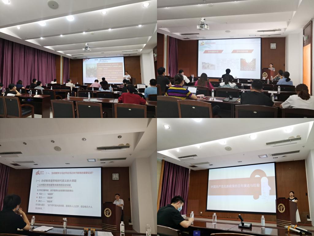 近日,第五期马克思主义理论研修班举行了系列专题学习。马克思主义学院谢霄男副教授、李净博士理论联系实际,深入浅出地为学员们解读了习近平总书记关于教育的重要论述、党的十九届六中全会精神、《资本论》剩余价值理论、中国共产党民族政策百年演进与经验启示等内容。