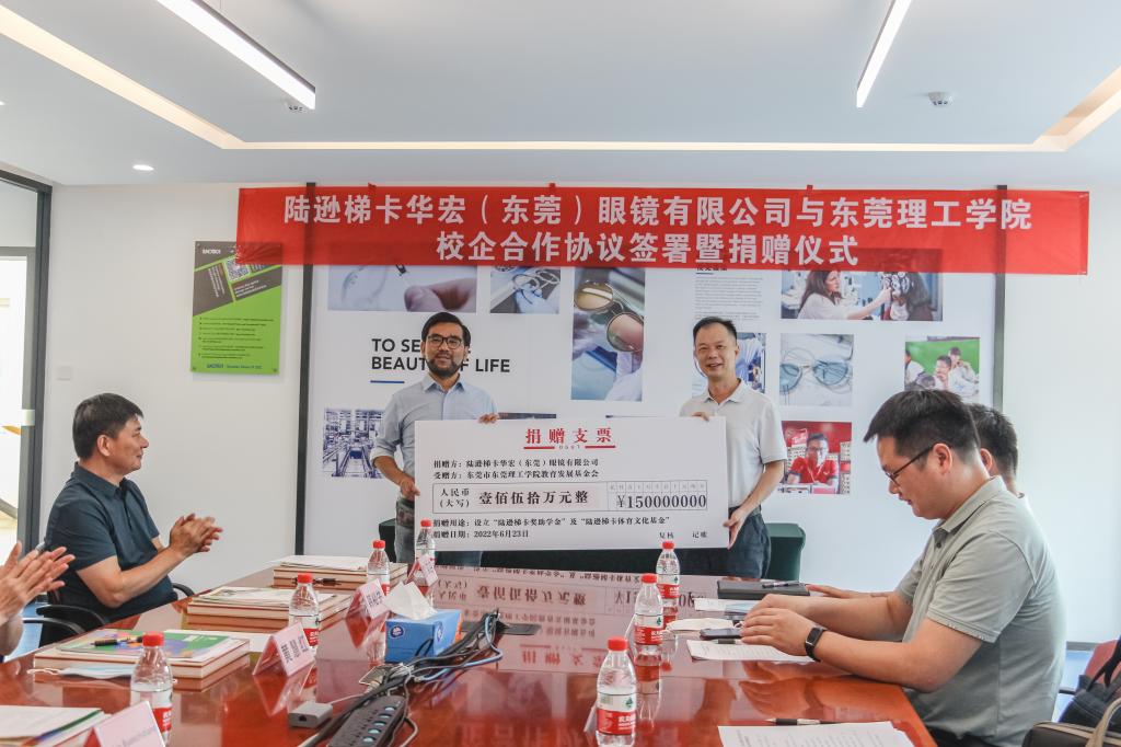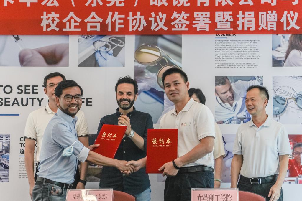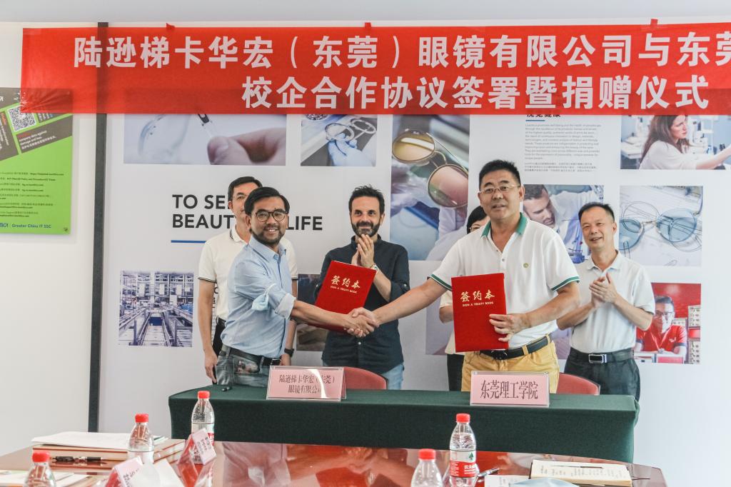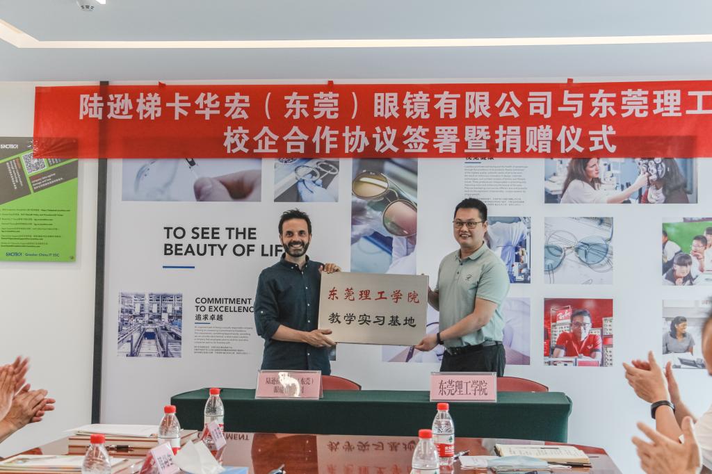 6月23日,我校与陆逊梯卡华宏(东莞)眼镜有限公司举行校企合作协议签署暨捐赠仪式。我校党委副书记李忠红,东莞市委台港澳办主任黄慧红,东莞市莞台经济文化交流中心主任宁晓娜,高埗镇委委员陈志良,陆逊梯卡集团亚洲运营人力资源总监Fabio Buoncristiano、工会主席韩裕生等参加活动。这是我校“访企拓岗促就业”专项行动又一成果。