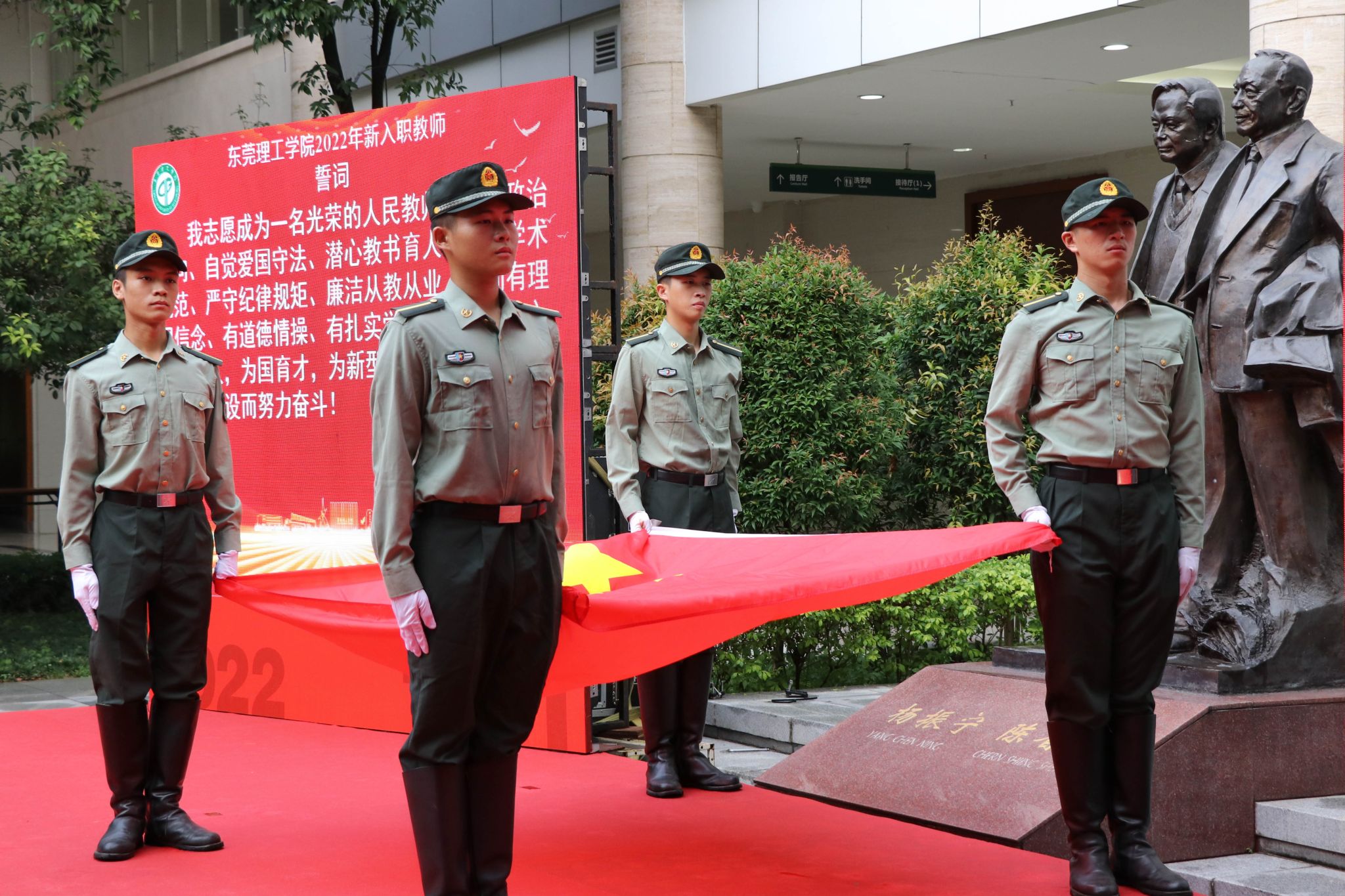 在新进教职工入职礼上,新进教职工们面向国旗、佩戴校徽,由马宏伟领誓、成洪波监誓,在全场师生见证下进行庄严的宣誓。