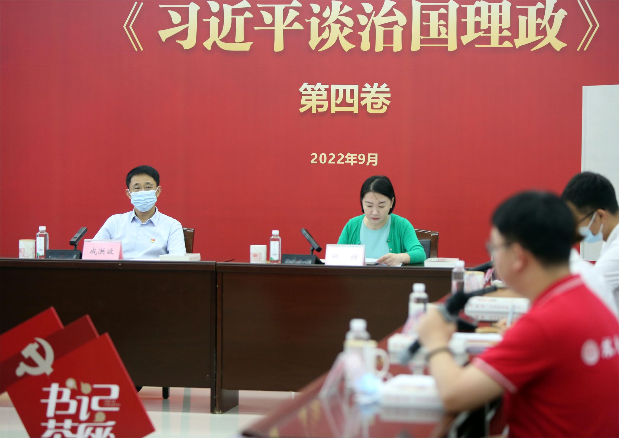 听完在座师生的思考和体会后,成洪波对深入学习《习近平谈治国理政》第四卷提出了四点建议。一要明确学习要求,做到“真学、真懂、真信、真用”,在学深悟透上下功夫。二要浓厚学习氛围。通过主题党日、主题团日、班会、读书分享会等方式组织学习活动;通过专题培训,宣讲、交流等方式汇聚学习成果;通过善用新媒体,线上线下输送优质的学习资源,做到学习有共鸣、有知音。三要提高学习质量,积极建设“大思政课”案例库,深入挖掘其中的思政和育人元素,充分利用社区育人、社会实践等平台,进一步解放思想,创新教育教学方法。四要推进学用结合,在做好学校疫情防控安全稳定各项工作的基础上,更加主动作为,加快推进学校学科建设、人才培养、科学研究、冲博扩硕、冲“双一流”建设等各项工作,在学以致用中深化学习成果。