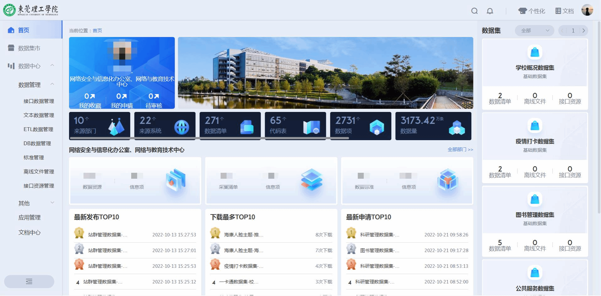 针对以往因缺乏整合、共享和联动而造成的“数据烟囱、业务孤岛、数据质量低”等问题,网信办适时启动数据中台建设项目,加强与各二级组织机构的沟通联动,按照“应采尽采”的数据共享思路,持续推进数字治理,规范学校基础数据的采集、分类、审核和更新工作,完成对学校人事系统、科研系统筹16个信息系统数据的清洗,建立27个主题数据目录,并开放共享271个数据清单。截至11月1日,数据中台已支撑校内36个系统应用的建设以及各部门之间的高效协同与数据联动,服务于学校基于数据的管理与决策,赋能学校治理体系和治理能力现代化。