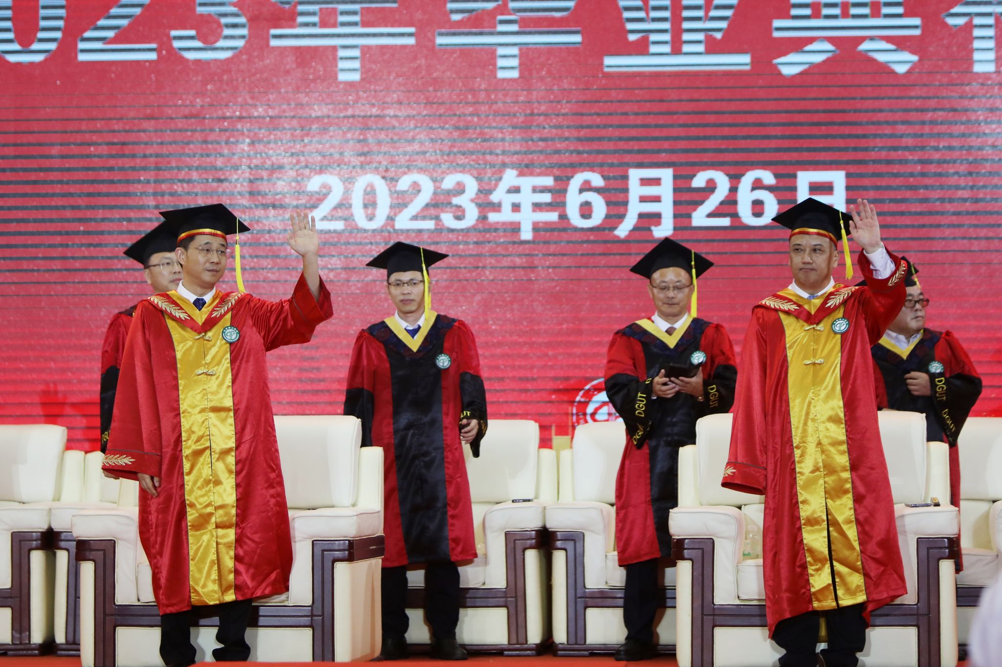 校党委书记成洪波,校党委副书记、校长马宏伟,副校长杨敏林、李文芳、徐勇军,学校学位评定委员会委员、各二级组织机构主要负责人、各二级学院负责人,2023届毕业生代表,各学院辅导员、班主任、教师、校友、家长等出席了本次典礼。仪式由党委副书记李忠红主持。