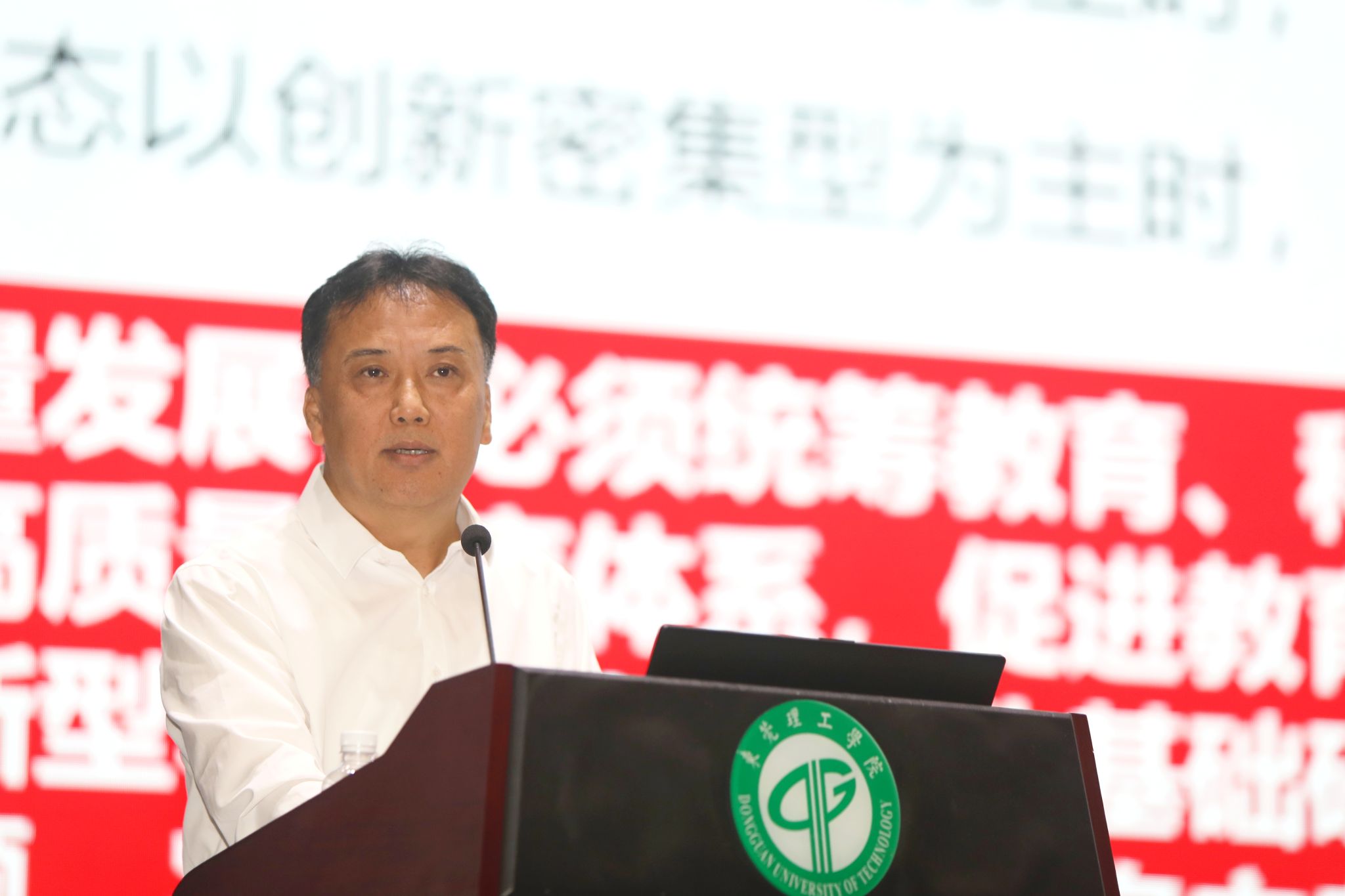 成洪波以《增强战略定力 激活“三大动力” 努力走在高等教育高质量发展前列》为题作主题报告。他带领参训人员深入学习了习近平总书记在中共中央政治局第五次集体学习时的重要讲话精神,习近平总书记考察广东重要讲话、重要指示精神,深刻阐释了建设教育强国的内涵意义、具体要求以及高等教育的龙头作用,详细分析解读了广东制造业当家和东莞科创制造强市建设的迫切需求。