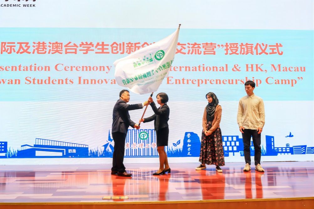 开幕式最后,还举行了“国际及港澳台学生创新创业交流营”授旗仪式。马宏伟将“国际及港澳台学生创新创业交流营”营旗,交到承办单位国际学院代表杨丹宇、交流营中外学生代表手上。