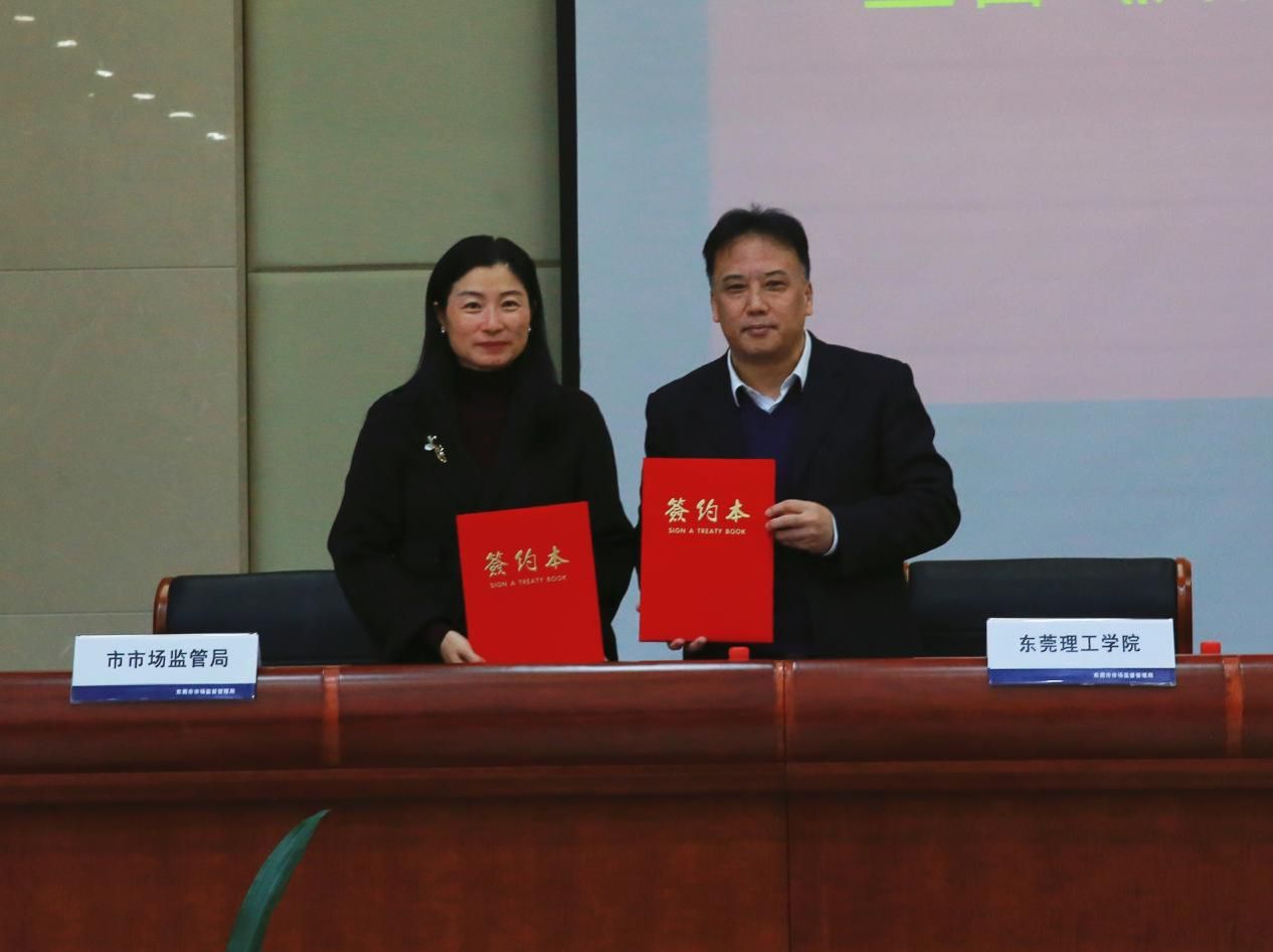 12月21日,我校与东莞市市场监督管理局签署知识产权战略合作协议,东莞市政府副秘书长梁绍光见证签约,校党委副书记、校长马宏伟与东莞市市场监督管理局局长杨朝琴签署协议。