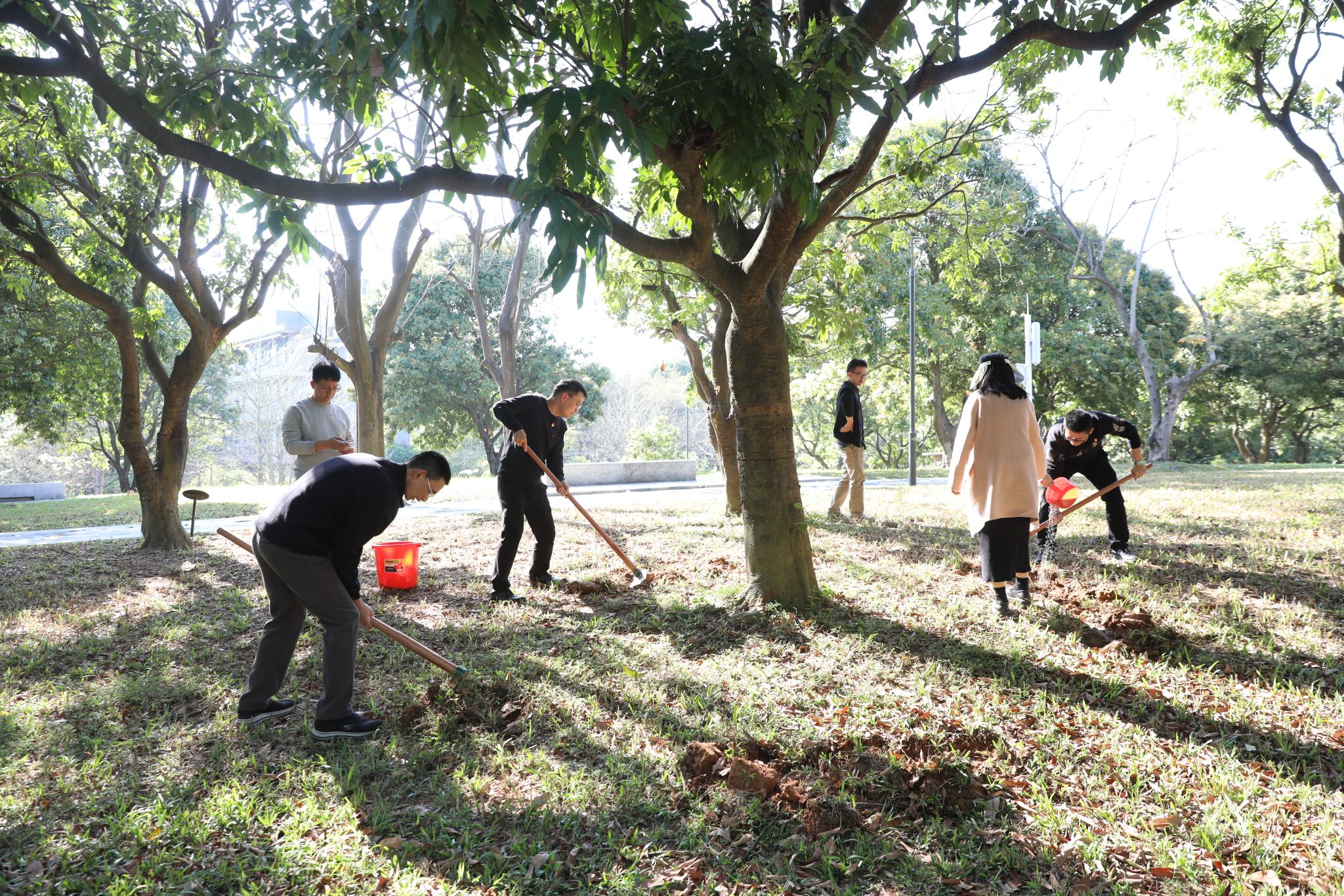 3月12日下午,机关党委、大学生党员卓越班在松山湖校区求真园开展荔枝林护林活动。师生党员一起为求真园的荔枝林挖肥穴、撒肥、覆土、浇水,在热火朝天的劳动中守护校园美“荔”。