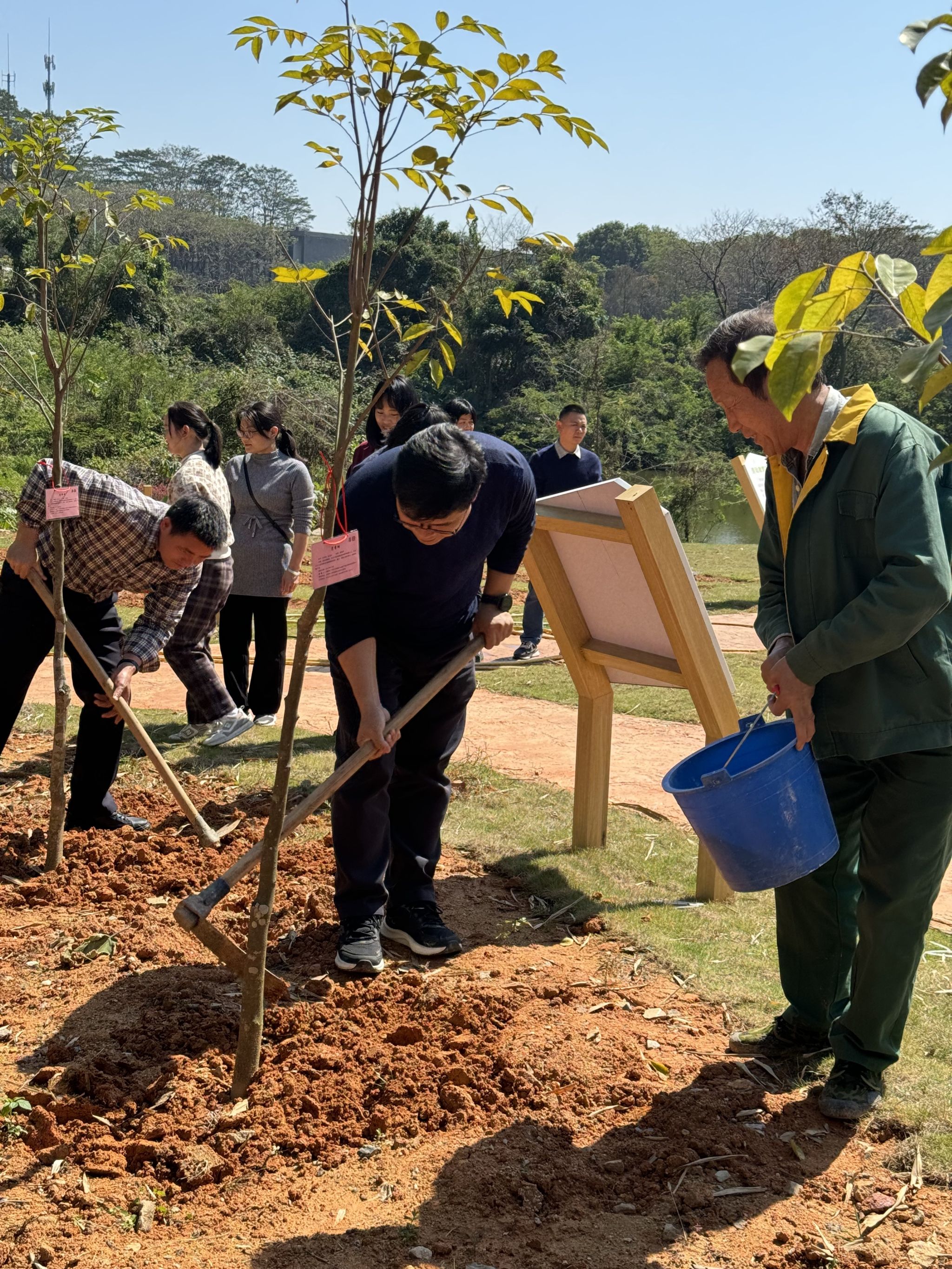 3月12日下午,学生社区知行学院(通识教育学院)30余名师生在培根园“莞香苗圃”开展绿美“莞”工春暖花“香”学生社区绿美主题系列活动之莞香树认养活动。