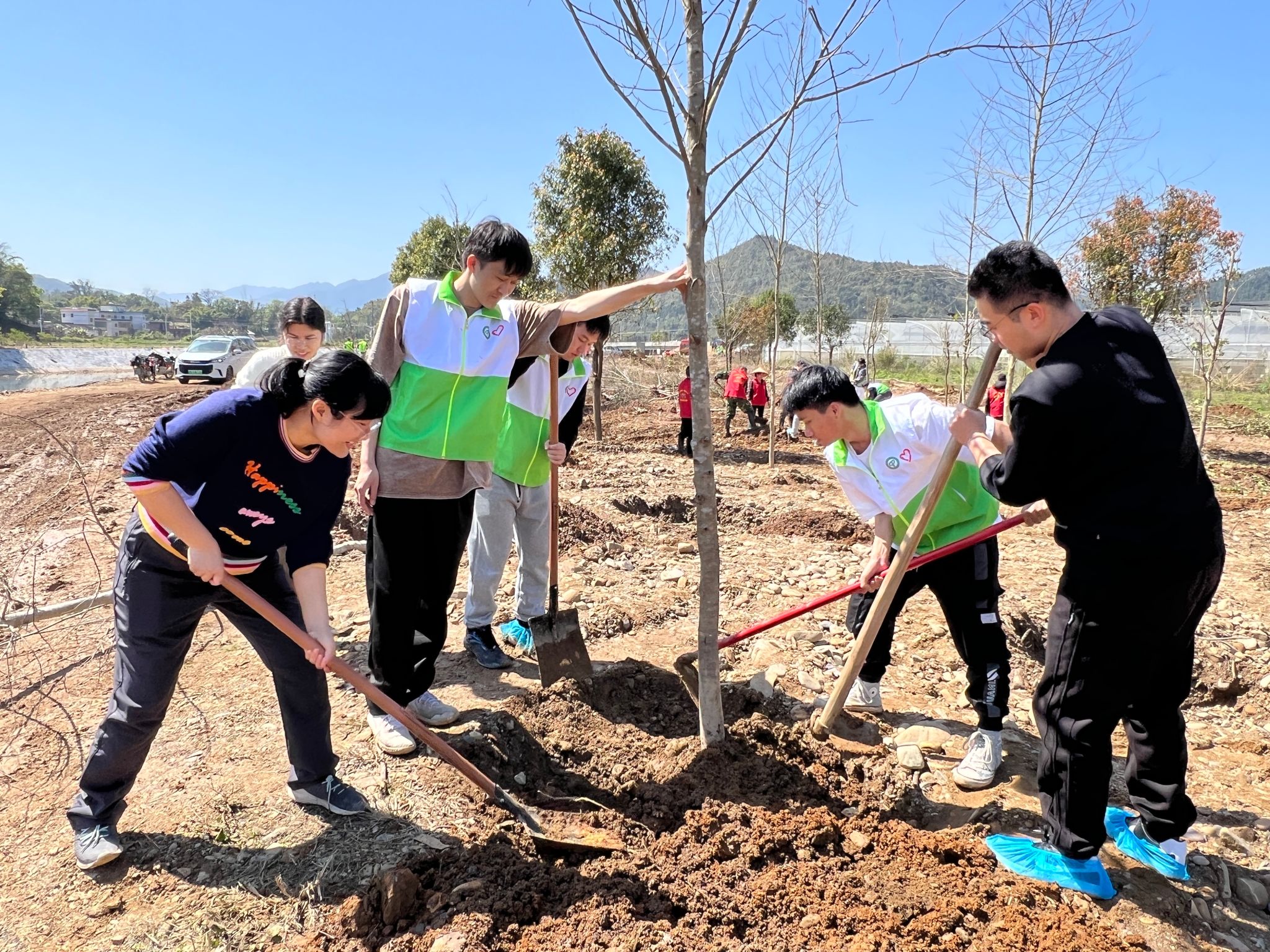植树节之际,学校团委组织“绿美莞工青年突击队”青年师生前往韶关市新丰县参与“百千万工程”实践活动,共植绿美青年林。青年突击队成员与当地党员干部共同参与义务植树活动,为绿美新丰贡献莞工青年力量。