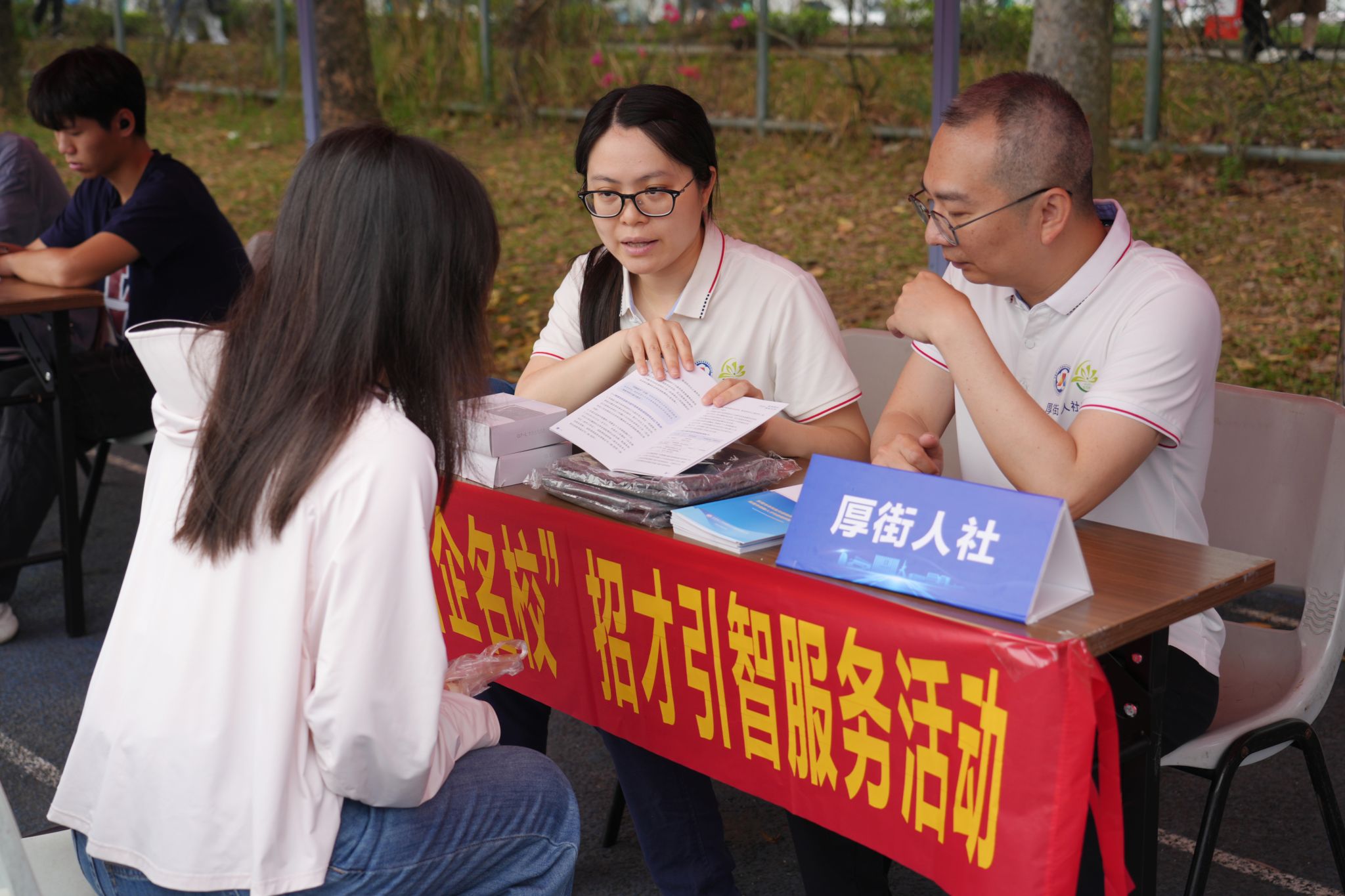 招聘会还邀请了东莞市人力资源和社会保障局、东莞市人力资源服务中心、多个镇街人社分局到现场,为同学们提供专业的就业创业政策、求职方法、简历指导、职业生涯规划等咨询。