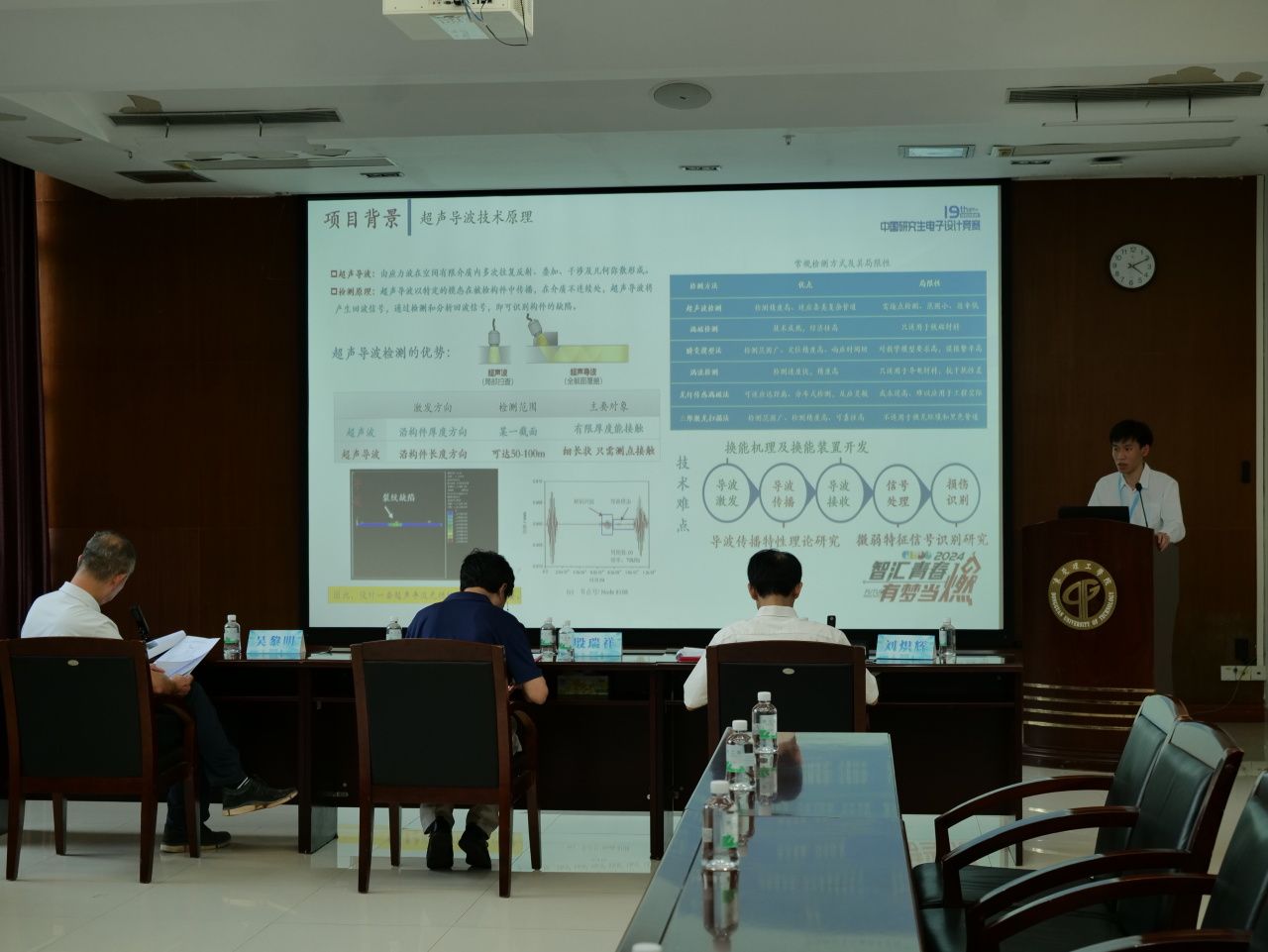 校党委委员、组织统战部部长、研究生院直属党支部书记彭晓波,校团委书记劳丹,电信工程与智能化学院院长胡耀华,研究生院副院长廖文波以及70余名师生代表出席活动。本次大赛特别邀请原华南理工大学电子与信息学院殷瑞祥教授、广东工业大学吴黎明教授和广东技术师范大学刘炽辉高级实验师担任评审专家。
