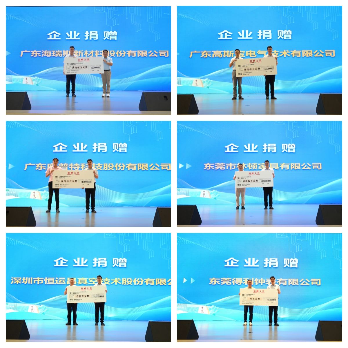 7月8日上午,广东海瑞斯新材料股份有限公司、广东高斯宝电气技术有限公司、广东奥普特科技股份有限公司、东莞市林顿家具有限公司、深圳市恒运昌真空技术股份有限公司、东莞得利钟表有限公司等6家企业向我校捐赠近百万元,支持我校研究生人才培养相关工作。