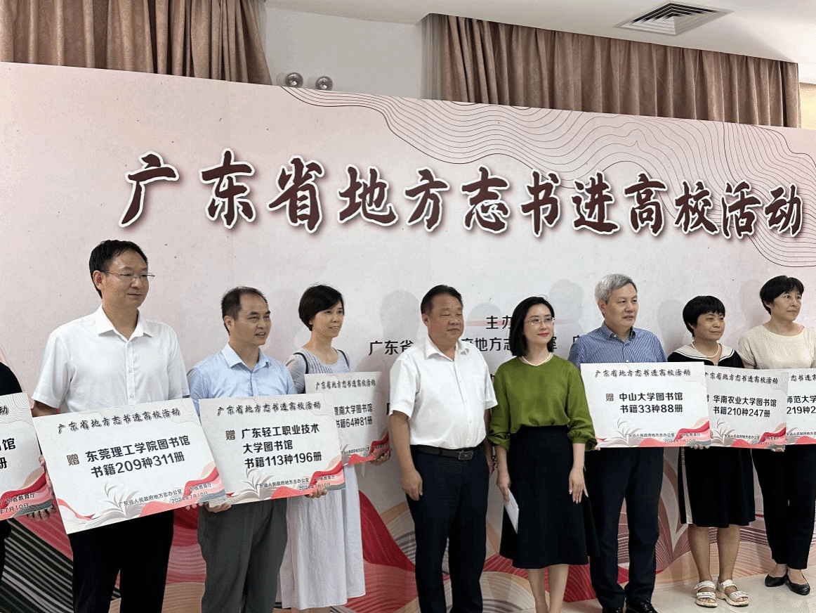 7月10日,由广东省人民政府地方志办公室、广东省教育厅主办、广东省高校图工委协办的“广东省地方志书进高校活动”在省方志馆举办,首批参与活动的45所高校获赠近7万册方志图书。我校图书馆馆长田根胜教授率队参加活动,并接收了209种(共311册)地方志书,其中包括《广东历代方志集成》、第一轮和第二轮《广东省志》、《全粤村情》等珍贵志书。