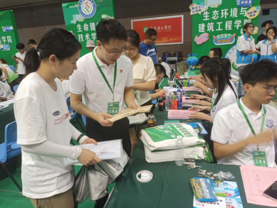 新生报到现场,近500名师生党员悉心指导新生办理报到手续,各学院师生党员积极投身迎新工作,主动亮身份、做表率,以饱满的热情投入到核验身份、宿舍引导、咨询服务、发放材料等系列工作中,用自己的实际行动将红色温暖传递给每一位新生。