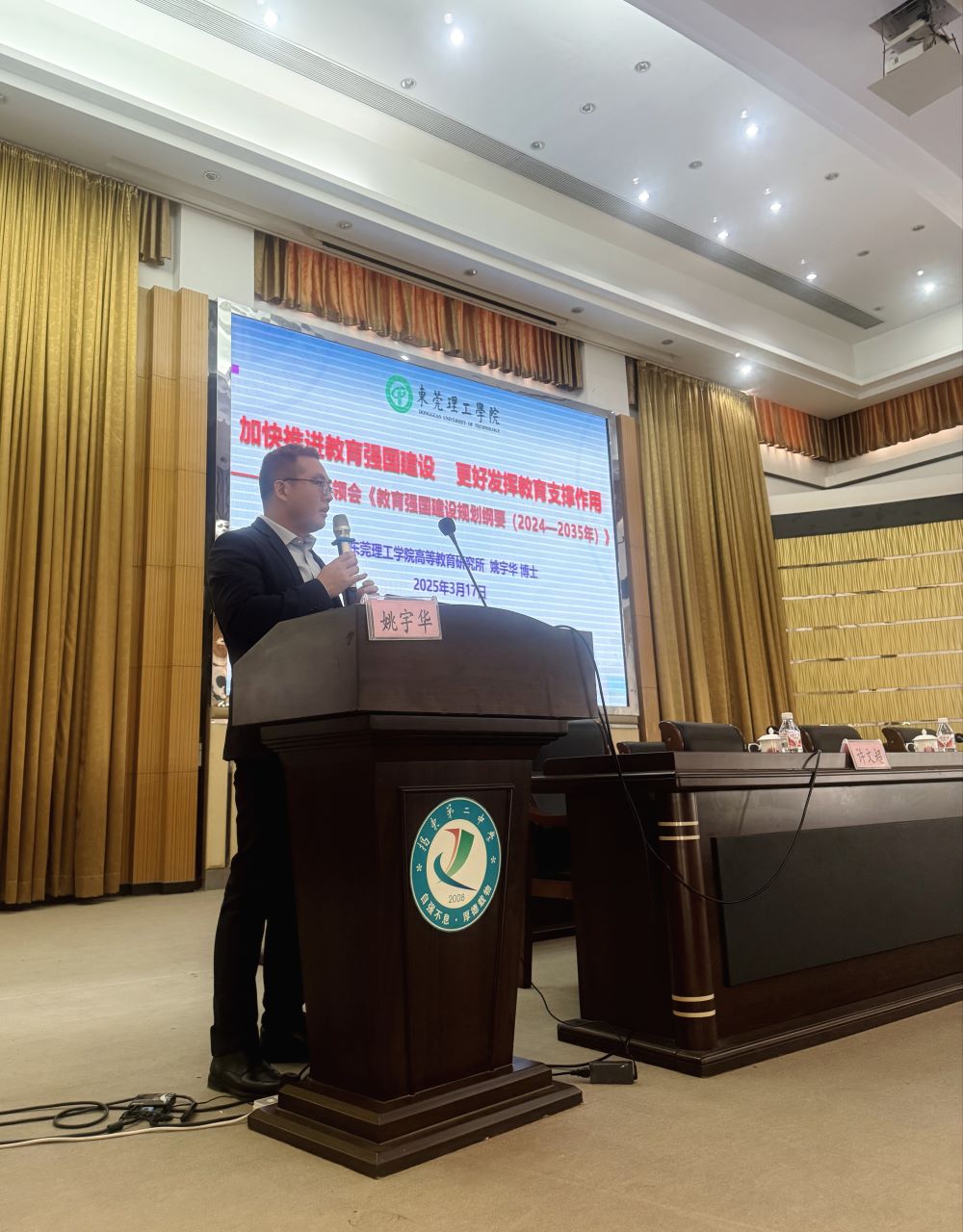 校“双百行动”工作专班办、教育集团、驻揭东服务队组织实施了此次培训。我校高等教育研究所特聘副研究员姚宇华博士以“加快推进教育强国建设,更好发挥教育支撑作用——深入学习领会《教育强国建设规划纲要(2024-2035年)》”为题,介绍了《纲要》出台的背景与意义、总体目标、总体结构等;结合《纲要》核心内容,基于政策和学术研究的视角,从教育强国概念的内涵、历程、评价等方面,对《纲要》进行了全面深入的解读。广东省名校长工作室主持人、松山湖第一小学校长蔡敏胜以“立德树人勾勒新质学校发展全景图:基于《教育强国建设规划纲要(2024-2035年)》理念下的学校治理”为视角,从“树立正确的价值观念、构建四种关系模型、转变管理中的思维方式”三个方面,结合详实的案例带给大家不一样的思考和启示,引导大家围绕《纲要》核心理念和内容,做好学校发展规划,做好教师队伍以及干部队伍建设,夯实学校的治理,办人民满意的教育。