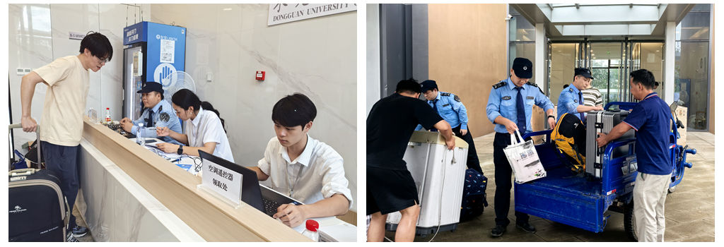 当日,为确保搬迁过程的安全与有序,总务后勤部“滴滴”车与新区物业巡逻车合力为学生们承运海量行李,大大提升了学生们的搬迁效率。