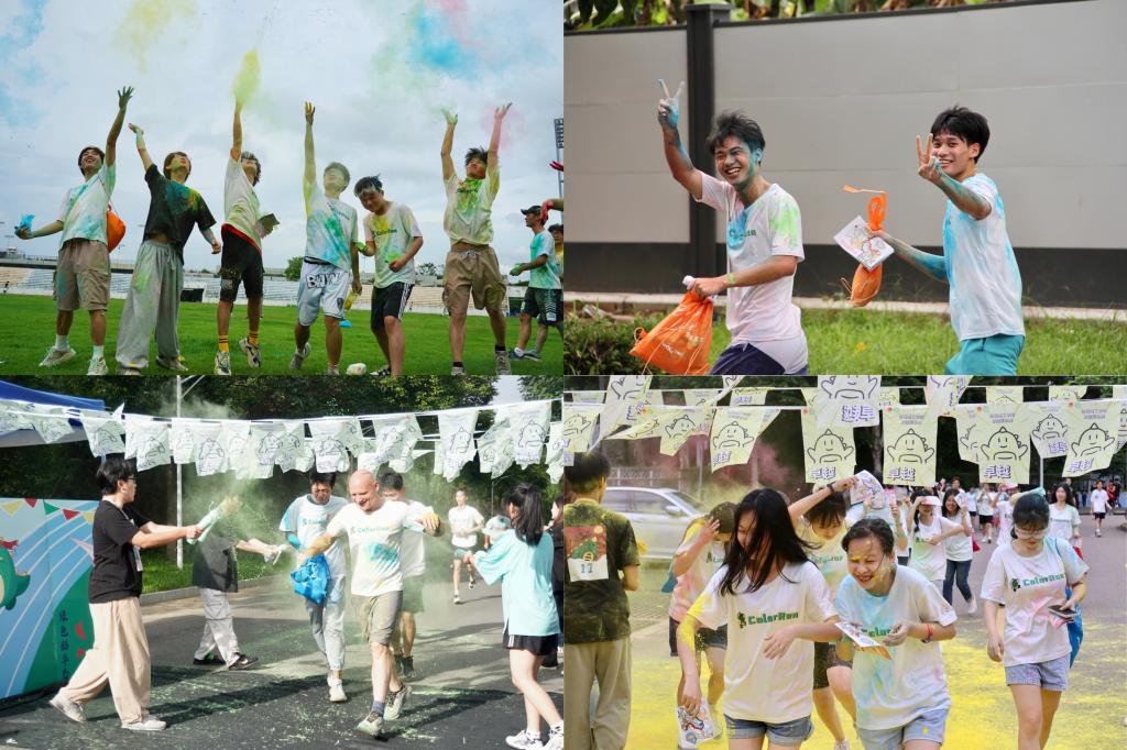 在操场环绕一圈完成热身后,参加彩色跑的师生们按照路线进行打卡,在打卡点处有工作人员泼洒彩色粉末,为同学们带来夏日缤纷体验。本次校园彩色跑活动设置了“爱国”“奋斗”“青春”“卓越”四个打卡点,旨在激励师生弘扬“爱国奋斗、追求卓越”的莞工精神,增强师生身体素质,鼓励当代青年踔厉奋发,笃行不怠,挥洒青春汗水,展望鸿鹄之志,赛出属于青年的最好成绩。