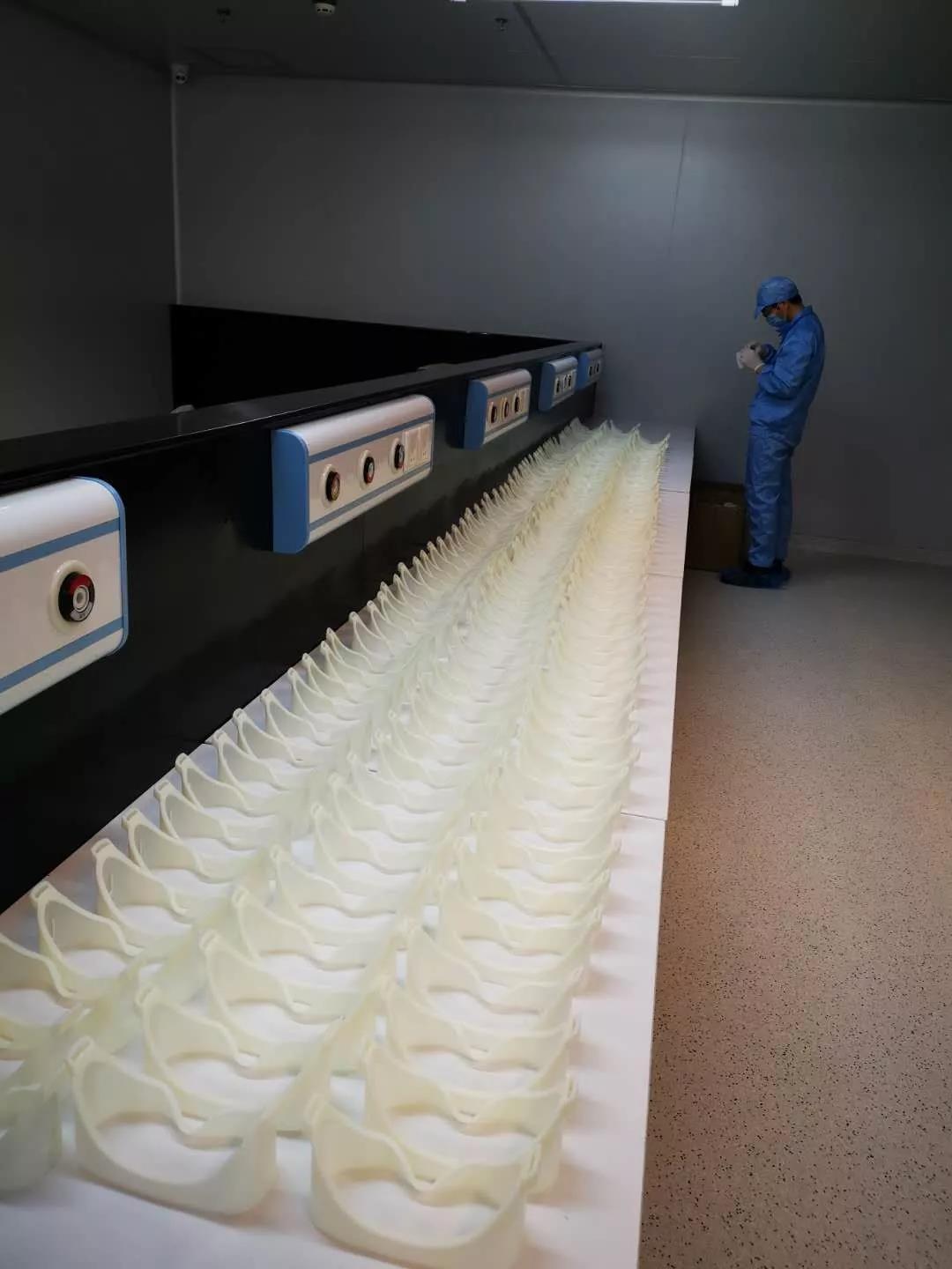 “因为护目镜的特殊用途,必须要保证生产时全程无菌。”陈盛贵很清楚必须要保证好这批护目镜的安全性,才能交付给一线人员使用。“我们使用的光敏树脂拥有一类医疗器械备案证,生产过程中每一个配件都会使用酒精擦拭。”