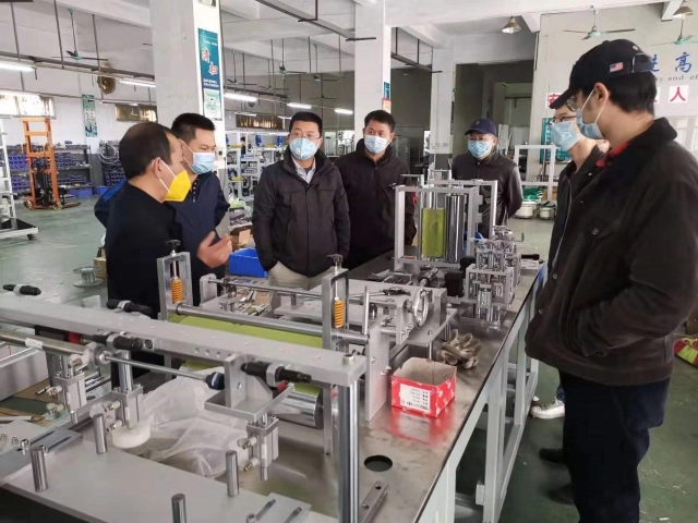 东莞久林吉良净化用品有限公司车间里的生产线上,机器轰鸣。为了疫情期间的口罩供应,许多生产线都需要保持24小时生产。突然,生产线传来故障警示音,值守夜班的张文涛与几位技术员马上来到设备前检查情况。几经调试后,故障机器恢复工作,张文涛轻舒了一口气,继续回到值守岗位上检查其他设备情况。这是日前发生在东莞久林吉良净化用品有限公司口罩生产车间的情景。
