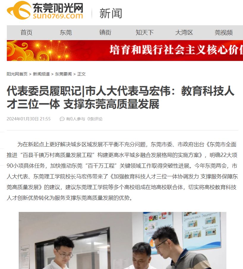 马宏伟表示,在推动东莞高质量发展,擦亮“科技创新+先进制造”城市特色,打造“百千万工程”东莞样板、推进中国式现代化东莞实践过程中,要充分发挥东莞在地高校在学科、人才和科研等方面的优势和特色,切实将市域、镇域、村域所需,转化为高校行之所向,把服务支撑东莞高质量发展和推进学校高质量办学紧密结合起来。