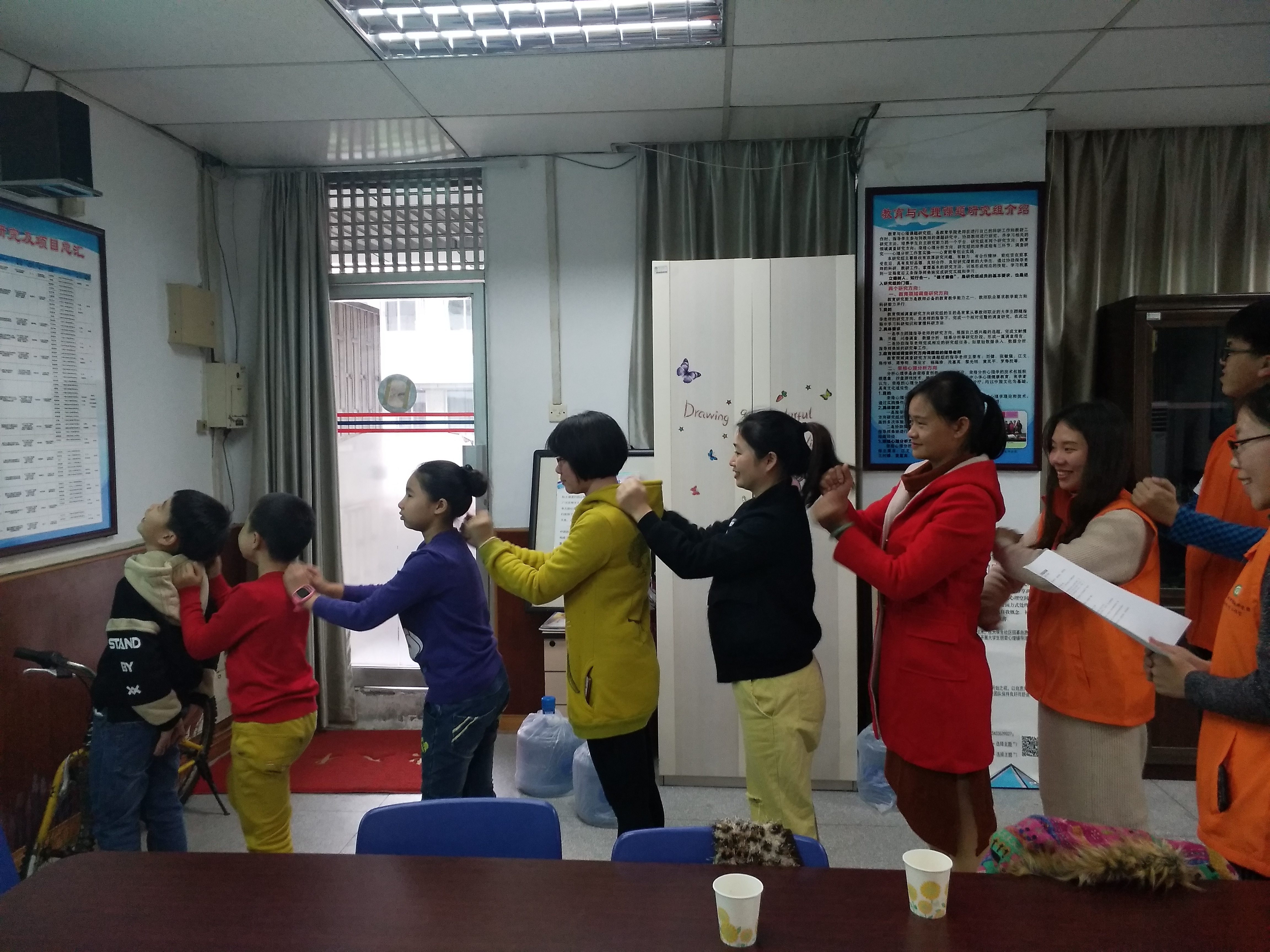 亲子活动家庭和社工、主讲老师、研究组指导老师在莞城校区