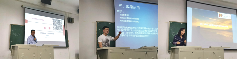 第二场汇报会4月17日举行。文传学院教师赵栓科、李芳、杨鑫分别从自身的访学经历、访学心得、科研成果、教学进展进行了访学汇报。赵拴科教授从听课、听讲座、阅读、科研等多维度汇报了访学陕西师范大学的成果,并陕西师范大学外语专业的特色课程设计、课堂组织形式、教学内容等进行了分享介绍。李芳老师详细汇报了在英国班戈大学的所见所闻,并呼吁师生出国开阔视野。杨鑫老师以英语发音为切入点,分享了在西北大学访学期间对语音学、音系学的研究成果。