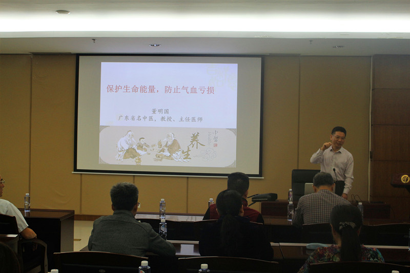 11月1日,广东省名中医、广州中医药大学教授、主任医师董明国到我校作题为《保护生命能量防止气血亏损》的保健讲座,与我校教职工分享《黄帝内经》的养生智慧。