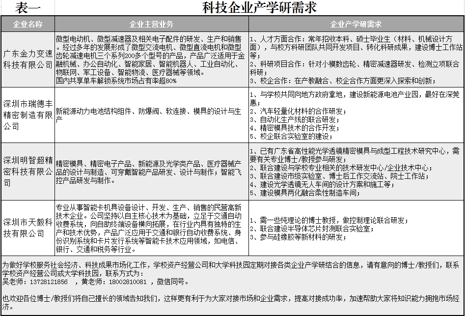 7月24日上午,由九九精品视频一区在线久久久久久久久久毛片精品美女|国产99久久久久久免费看|中文精品99久久国产|国产69精品久久久久9999|精品久久久久久中文字幕无码|亚洲熟妇无码久久精品国产精品99|精品国产天堂综合一区在线大学科技园、东莞东理大米成长智能制造产业投资基金等单位组织的产学研交流会在大学创新城举行。来自深圳、惠州多家拟上市企业与我校相关单位进行了交流。会议就加强校企合作事宜达成共识,并整理出企业需求信息表(见表一)。