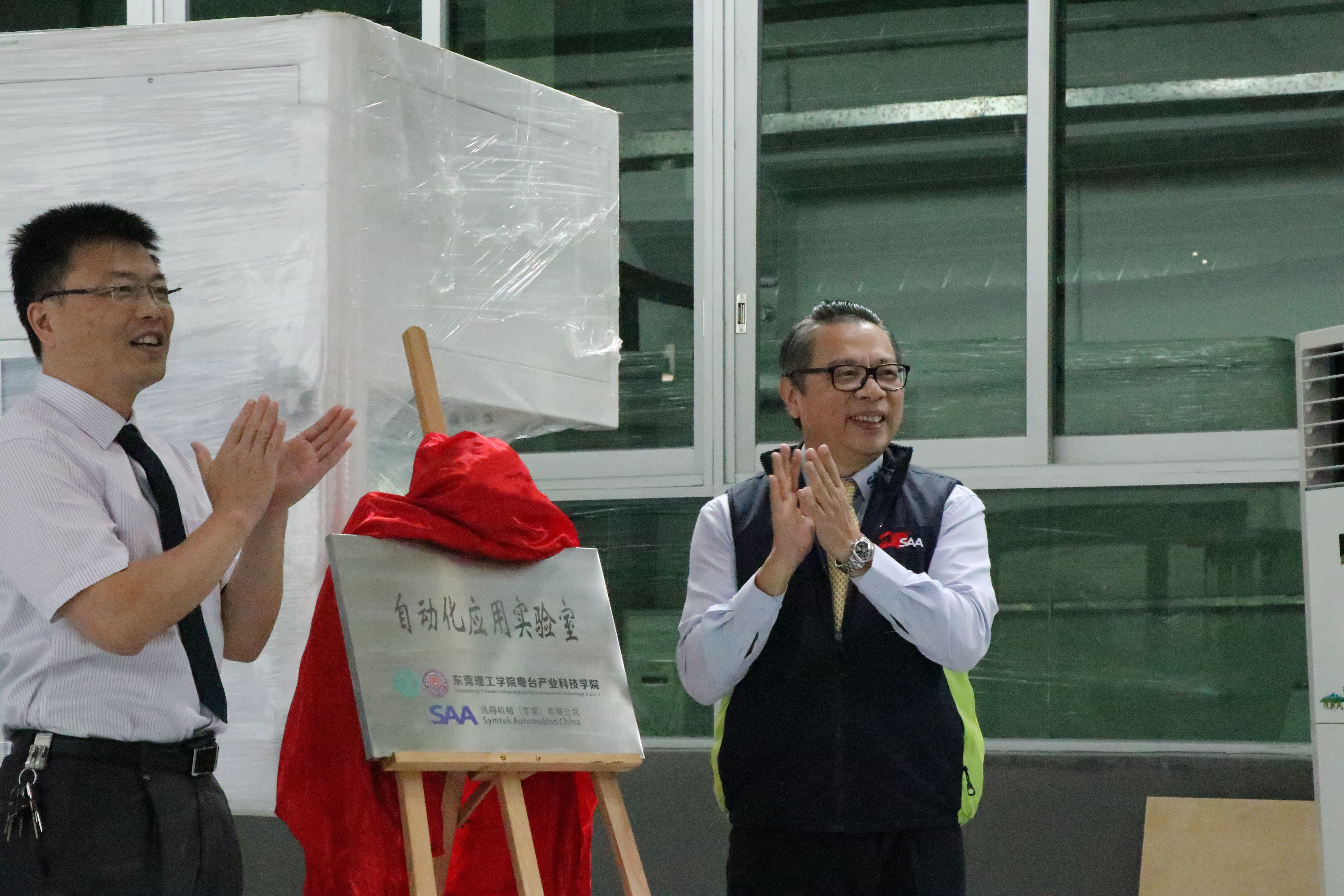 1024日,粤台产业科技学院与迅得机械东莞有限公司在莞城校区举行共建自动化应用实验室挂牌仪式。迅得机械东莞有限公司罗锦堃总经理、粤台学院院长陈伟及相关师生参加挂牌仪式。
