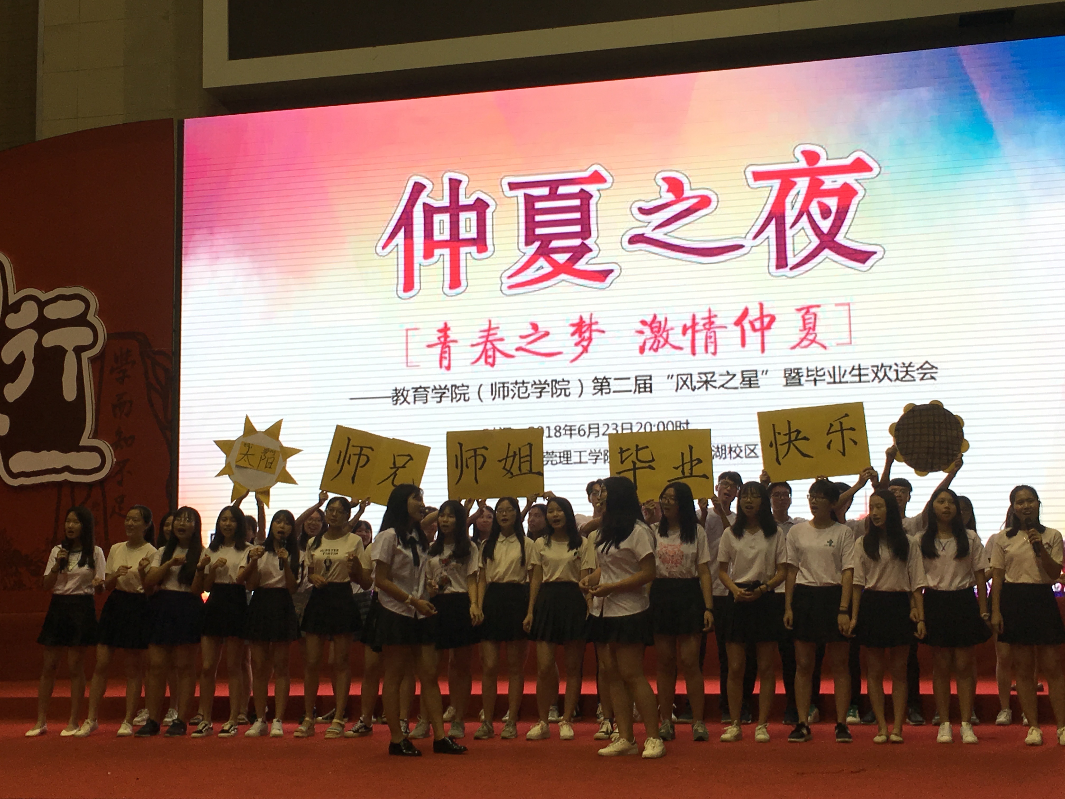 6月23日晚上,教育学院(师范学院)2018届毕业生欢送会暨“风采之星”展在学校体育馆举行。教育学院(师范学院)院长赵全、党总支书记杨万江、党总支副书记黄艺琦、副院长琚丹红等领导以及教育学院的老师们出席了活动。
