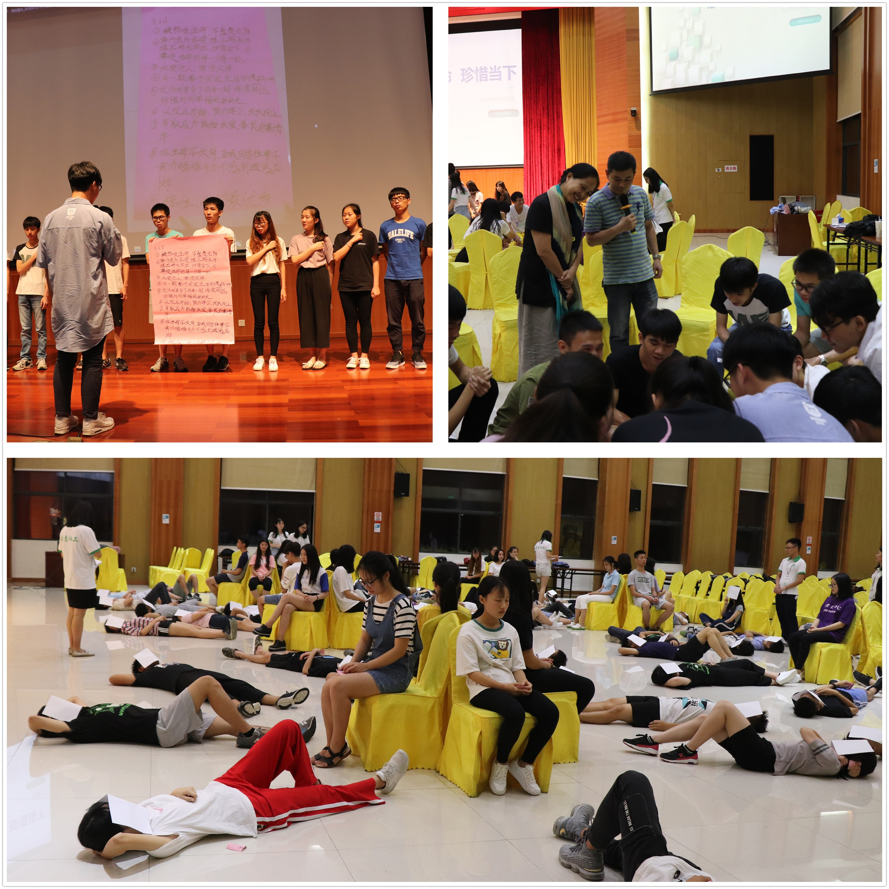 本活动由国家职业心理咨询师涂月主持,9名驻校社工协助,以小组的形式进行。活动中,100名活动参与者分为7个小组,在涂月和社工的引导下,完成了团队建设和话题讨论。讨论氛围活跃,参与者围绕“人为什么活着”和“生命有什么意义”等问题,积极发言,各抒己见。在沉船游戏环节,大家进行了“死亡体验”以及模拟亲朋好友伤心的情景,知道了生命的脆弱和可贵。同时,在对“生命的意义”进行了更深层次的思考后,参与者纷纷表示,要感恩生命,活在当下,珍惜爱自己的人以及自己爱的人,努力学习,强化自身的专业技能,尽自己最大的努力回报社会。