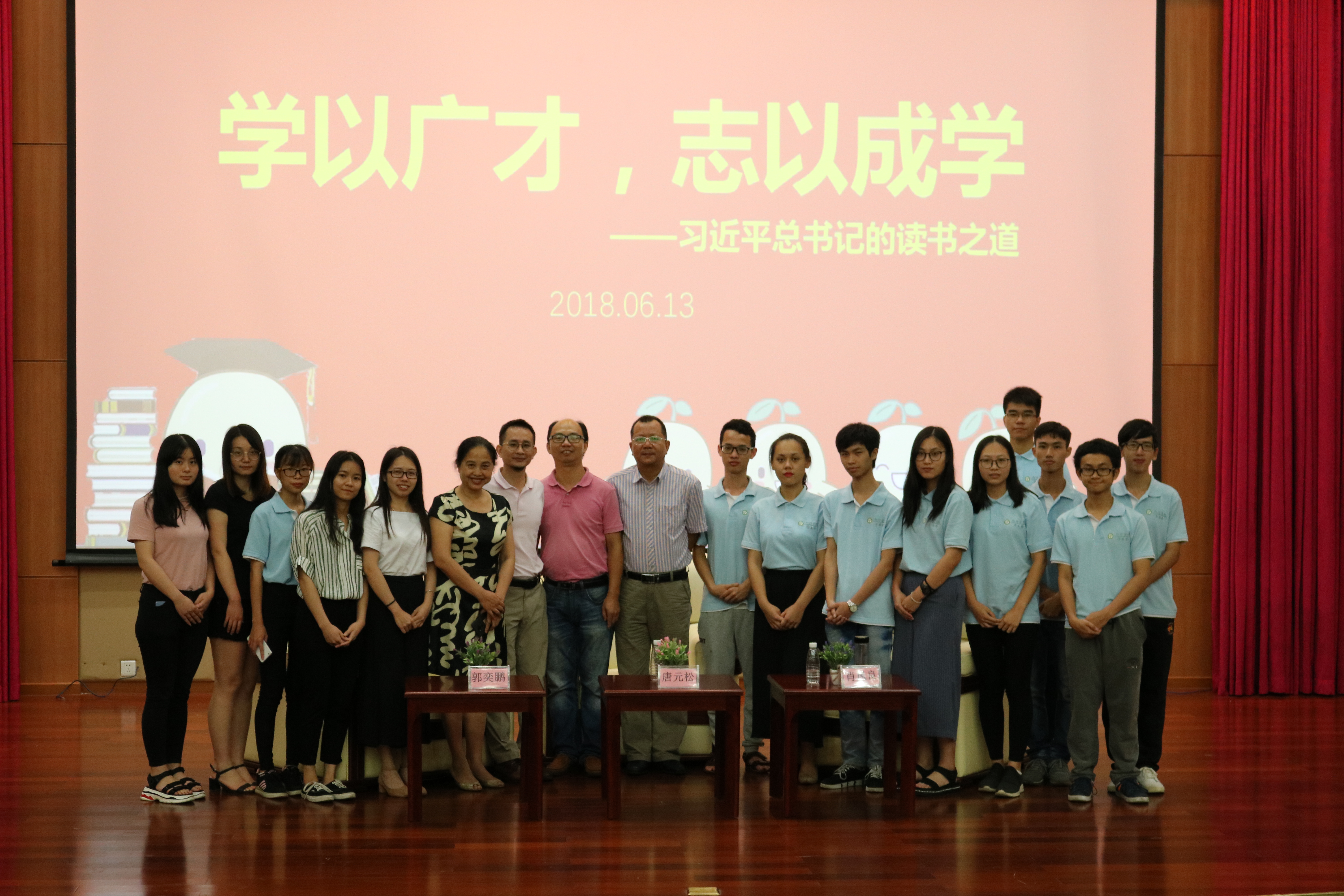 6月13日,知行讲堂思政教育进社区系列之“‘学以广才,志以成学’习近平总书记的读书之道”在学术会议中心如期开讲,主讲人为马克思主义学院执行院长唐元松,形势与政策教研室主任肖凤良,马克思主义基本原理教研室主任、知行学院莞馨分院副院长郭奕鹏。学生社区知行学院专职副院长苏亚玲、知行学院相关工作人员以及500多名学生到场聆听。