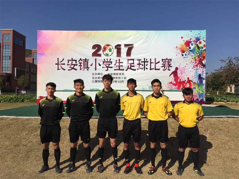 东莞长安镇于2017年12月11日-22日举行2017年长安镇小学生足球比赛,来自全镇近25所公民办小学近500名运动员参加了比赛。教育学院(师范学院)应长安镇教育局的邀请,承担了赛事的组织和裁判工作。教育学院(师范学院)院长赵全、肖卫老师和6名体育系同学在十二天的比赛中,担任了本届比赛的业务指导及组织、裁判工作。师生们依据公平公正的原则,以严谨认真的态度和精湛的专业能力,得到各界人士的认可和好评,李建发、孙文、庞穗民、朱淦、张耀权、邓峻枫6位同学获得了优秀裁判员称号。