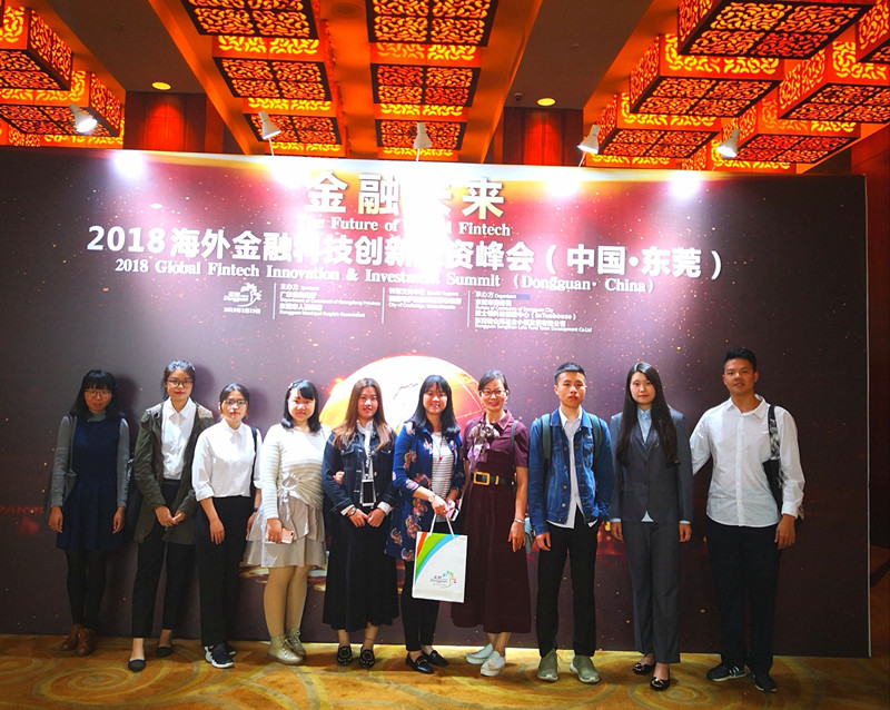3月19日,2015级商务英语专业的8位同学在李绮贞老师的带领下,参加在松山湖凯悦酒店举办的2018海外金融科技创新投资峰会专业实践活动。峰会内容包括专题圆桌论坛“金融科技如何服务人类及社会发展”,区块链项目路演及线上线下投资人问答,支付方式项目路演及线上线下投资人问答,投资与价值管理项目路演及线上线下投资人问答,中外企业自由交流等内容。同学们的任务是在旁倾听并适时提供翻译帮助。