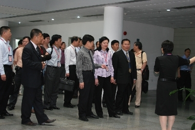 之后,专家委员会在东莞市委副书记兼学院党委书记刘树基,学院领导杨晓西、王江水、安少华、邹晓平等的陪同下,相继考察我院公共设施,先后到图书馆、现代教育中心、学生饭堂和学生宿舍考察。
