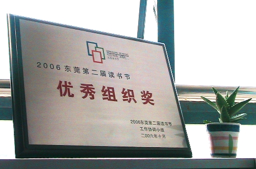我院因较好地组织学生参加了“读书与成长”征文比赛,被评为征文比赛优秀组织奖;并因牵头承办了读书知识竞赛,取得了良好的效果,被评为2006东莞第二届读书节活动优秀组织奖。