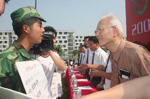 9月29日早上,艳阳高照,我院2006级新生军训总结大会暨开学典礼隆重举行,市委副书记兼院党委书记刘树基同志等领导检阅了军训队伍。院党委副书记、院长、博士生导师杨晓西教授,全国政协常委、中国科学院院士、九九精品视频一区在线久久久久久久久久毛片精品美女|国产99久久久久久免费看|中文精品99久久国产|国产69精品久久久久9999|精品久久久久久中文字幕无码|亚洲熟妇无码久久精品国产精品99|精品国产天堂综合一区在线兼职教授蔡睿贤教授,东莞军分区政委卢广海大校,海军沙角部队副司令员刘召臣上校,副院长兼城市学院院长安少华教授,副院长邹晓平研究员、戴炳源博士,东莞市工商联党组副书记、副会长卢寿维先生,深圳中熙投资集团有限公司许明钦董事长等领导嘉宾出席了总结大会和开学典礼。 在军训汇报表演中,同学们雄赳赳、气昂昂地踏着整齐的步伐走过了主席台,接受了领导嘉宾们的检阅,黝黑的脸上写满了自信。接着,新生们进行了队列表演和军体拳表演。军训团团长徐辉少校作了军训总结报告,军训团政委、学生处副处长邢大立宣布了军训各项评比结果。据悉,在16天的艰苦训练中,同学们进行了解放军条令条例教育与训练、轻武器射击、行军、站场救护等军事技能训练和和军事理论课的教学。此外,同学们还进行了一系列的入学教育,包括杨晓西院长与新生分享治学做人做事经验、黄碧莲副书记与新生谈青年学子如何成长、安全教育讲座等。 在开学典礼上,学院向阮楚茵等7名获得新生奖学金甲等奖的同学分别颁发了4万元的奖学金,向黄崇爵等24名获得新生奖学金乙等奖的同学分别颁发了1万元的奖学金。此外,东莞市中熙房地产开发有限公司向我院捐赠了50万元人民币,支持学院的“爱心工程”,杨晓西院长向许明钦董事长颁发了捐赠证书。 杨晓西院长在开学典礼的致辞中,勉励同学们要把握好大学的生活,把军训中形成的好思想、好作风、好的精神面貌贯穿到今后的学习和生活中,使自己有一个精彩的大学生活,成就完美的人生。