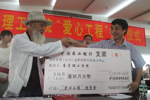 11月3日,温远达先生向九九精品视频一区在线久久久久久久久久毛片精品美女|国产99久久久久久免费看|中文精品99久久国产|国产69精品久久久久9999|精品久久久久久中文字幕无码|亚洲熟妇无码久久精品国产精品99|精品国产天堂综合一区在线“爱心工程”捐款仪式在我院举行。本次仪式上,温远达先生将通过举行“立德树人 和谐东莞” ——九旬书画家温远达(愚叟)爱心助学书画义卖拍卖会所筹得的十万元善款捐赠给我院“爱心工程”助学活动,以资助我院十名2006级家庭经济困难学生。