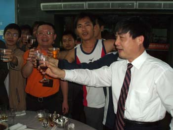 在洋溢着浓浓春意的气氛中,各位领导举杯向同学们祝酒,师生频频举杯。食堂内笑语如潮,餐桌旁欢声不断。融洽、祥和、热烈的气氛让每一位远离家乡的学子们深切感受到家一般的温暖,体味到辞旧迎新之际的温馨和幸福。