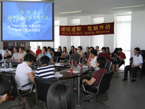 2007年5月11日下午外语系召开了迎评工作落实大会,会议由外语系主任杨国俊教授主持。