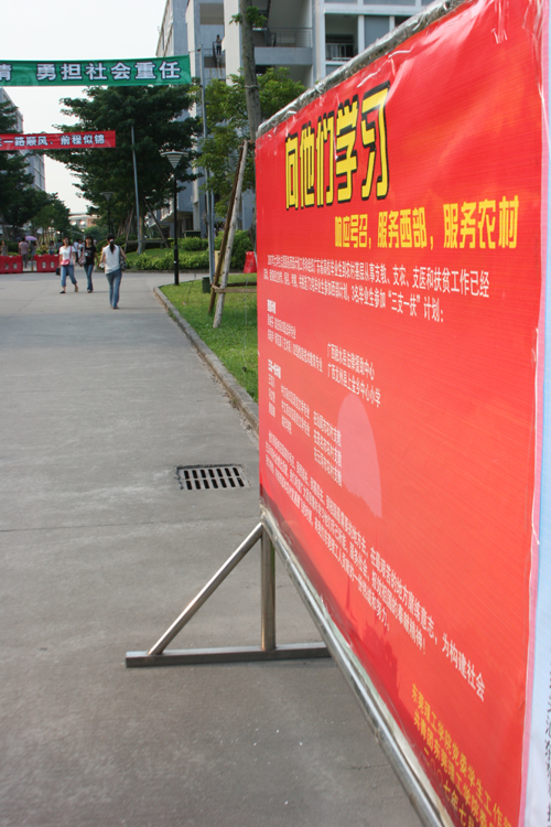 会上,近百名山区计划志愿者受到了表彰,我院2005届毕业生王柏根同学作为2005年山区计划的志愿者,在梅州市梅江区团委服务两年,并因表现出色,荣获“广东省大学生志愿服务山区计划金奖”,此奖项全省仅有八人获得。同时,我院郑琬尹、陈群弟、陈衬欢、刘惠芳、丁念恩、吴映芬六位毕业生作为今年全省新招募的西部计划志愿者,在集体宣誓后即赴广西,将在广西参加短期培训之后分赴当地市、县开展为期一年的志愿服务。