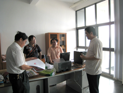 二〇〇七年九月二日是我院学生正式上课的前一天,上午教务处领导阮湘元处长、刘健副处长及教务处相关人员到各系(院)了解开学前的教学准备情况。