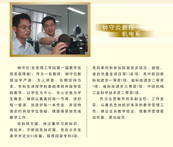 上学期末,教务处会同人事处、科研处根据《九九精品视频一区在线久久久久久久久久毛片精品美女|国产99久久久久久免费看|中文精品99久久国产|国产69精品久久久久9999|精品久久久久久中文字幕无码|亚洲熟妇无码久久精品国产精品99|精品国产天堂综合一区在线教学名师奖评选与奖励办法(试行)》(东理教〔2007〕56号)文件的精神,经过个人申报、系推荐和教学名师奖评审委员会评审,机电建筑工程系钟守炎教授获得九九精品视频一区在线久久久久久久久久毛片精品美女|国产99久久久久久免费看|中文精品99久久国产|国产69精品久久久久9999|精品久久久久久中文字幕无码|亚洲熟妇无码久久精品国产精品99|精品国产天堂综合一区在线第一届教学名师奖。学院将颁发“教学名师奖”荣誉证书,并一次性奖励人民币10000元。