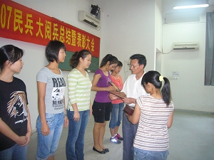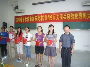 会上,戴炳源充分肯定了我院女兵方队在阅兵活动中的表现,对我院女民兵的精彩演出得到了各级领导的称许表示祝贺。王江水在总结发言中指出,希望女兵们能将那种艰苦拼搏精神发扬开来,把这种精神带到今后的学习、生活、工作中去。