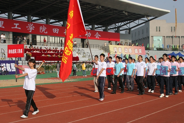 入场仪式在激昂的运动员进行曲声中进行。12支学生代表队和14支教工代表队先后入场。运动员们着装统一、步伐整齐,在系部旗帜的引领下,依次接受全场观众的检阅,他们意气风发,充满自信与自豪。