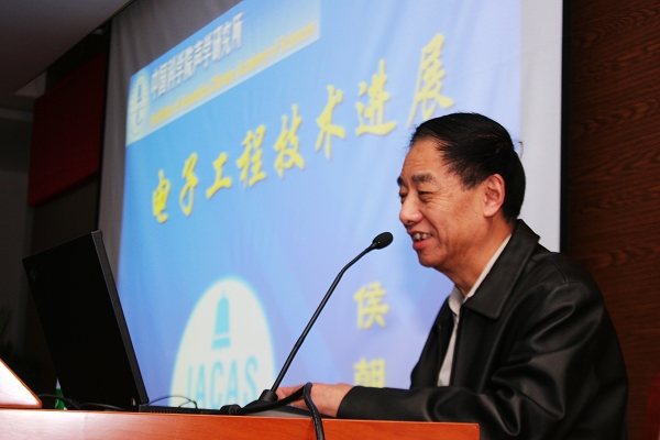在历时两个小时的报告过程中,侯院士以风趣质朴的语言娓娓道来,从电子工程技术的发展、信息系统与DSP技术的发展、微系统的构成、系统芯片SOC的特点与关键技术、中科院声学所系统集成部已完成的工作等几个角度,向广大师生介绍了电子工程技术领域的应用、最新进展与学术前沿问题等内容。同时,侯院士结合自身丰富的科研经验,并针对我院发展现状与具体特点,指出了我院今后一段时期科研工作的方向与突破口,并对我院学科建设与师资队伍培养等提出极具建设性的宝贵意见,并对广大师生在科研学术等方面寄予了殷切的期望。侯院士高屋建瓴的透彻分析,严谨求实的学术态度,虚怀若谷的坦荡胸襟,语重心长的谆谆教诲,使广大师生充分领略了学术巨擘的大家风范,同时也为侯院士数十年如一日兢兢业业献身科研事业的精神所深深鼓舞。