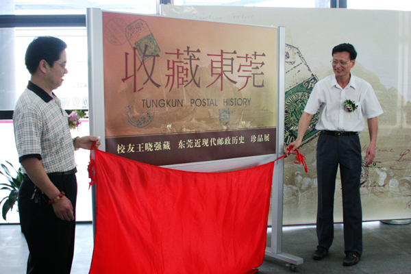 本次展览共展出了广东省集邮协会理事、东莞市集邮协会副秘书长、东莞邮政历史研究专家、我院校友王晓强耗费8年的全部精力汇集而成的大清国家邮政时期、中华民国邮政时期的东莞邮政历史珍品近百件。展览将于本月15日结束。