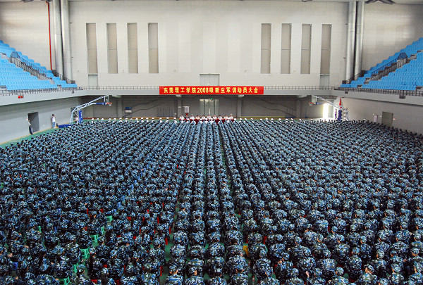 9月15日上午,我校在体育馆举行2008级新生军训动员大会。军训领导小组副组长、校党委副书记王江水,军训领导小组副组长、副校长戴炳源,军训领导小组成员、校党委宣传部部长李培经,军训团团长徐仕伟,军训领导小组成员彭晓波、路晓军、张伟林等出席大会,军训领导小组成员兼军训团政委邢大立主持大会。