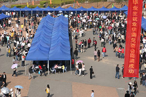 12月21日,由东莞市人事局主办,我校承办的“东莞高校2009届毕业生就业供需见面会”在我校举行。来自东莞市内外的近300家企事业单位进场招聘,涉及教育、金融、医疗、制造等领域,提供的职位有3000多个。招聘会吸引了东莞和周边高校1万余名毕业生前来求职。东莞市人事局副局长莫达兴、我校党委副书记王江水、市人才管理办公室主任方贺仔等到现场指导工作,与用人单位及部分毕业生进行了交流,了解招聘会举行情况及今年毕业生就业的有关情况。