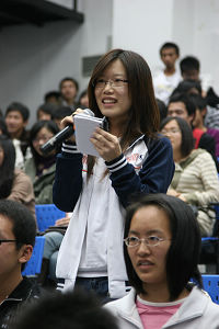 王副书记用生动的图片向同学们展现了自己曲折的人生历程,展示了那段激情燃烧的岁月。一幅幅真切的画面感染了在场的每一位同学,赞叹声不时响起。王副书记真诚、坦直而不失风趣、幽默的话语,打动着现场的每一位听众,掌声、笑声此起彼伏。